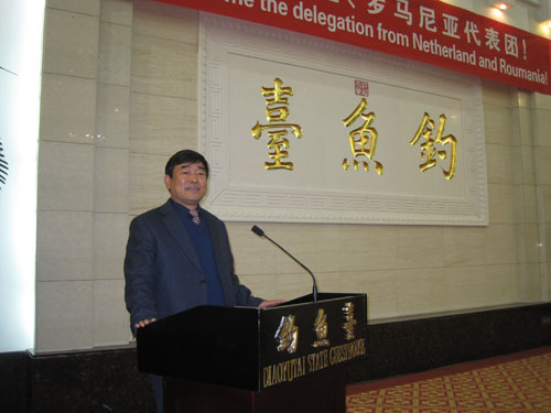 岳建武董事長(zhǎng)在釣魚臺(tái)國(guó)賓館俱樂部向兩國(guó)客人和中方領(lǐng)導(dǎo)介紹企業(yè)情況