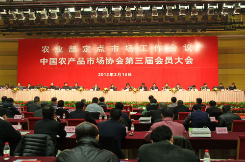 2012年2月14日,中國(guó)農(nóng)產(chǎn)品市場(chǎng)協(xié)會(huì)第三屆會(huì)員代表大會(huì)在河南鄭州隆重召開。農(nóng)業(yè)部、中國(guó)農(nóng)產(chǎn)品市場(chǎng)協(xié)會(huì)、各。ㄊ校┺r(nóng)業(yè)廳(局)、農(nóng)業(yè)部定點(diǎn)市場(chǎng)負(fù)責(zé)人相聚一堂,總結(jié)了我國(guó)農(nóng)產(chǎn)品流通和農(nóng)產(chǎn)品市場(chǎng)建設(shè)情況,選舉產(chǎn)生了第三屆協(xié)會(huì)領(lǐng)導(dǎo)班子和常務(wù)理事。
