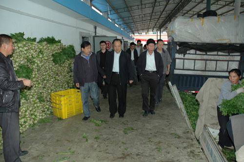 佟寶君一行認真察看了蔬菜保鮮庫、農(nóng)產(chǎn)品交易大棚和制冰車間等,詳細了解蔬菜流通、儲運、銷售等情況。佟寶君一邊走,一邊與企業(yè)負責(zé)人、菜農(nóng)、菜商親切交談,并對隴海市場建設(shè)工作取得的成績給予了充分肯定。希望隴海市場繼續(xù)為農(nóng)民增收、農(nóng)業(yè)增產(chǎn)、農(nóng)村繁榮作出新的更大貢獻,不斷面向市場大膽探索建立新的經(jīng)營模式,推動隴海市場向大型流通企業(yè)集團方向發(fā)展。